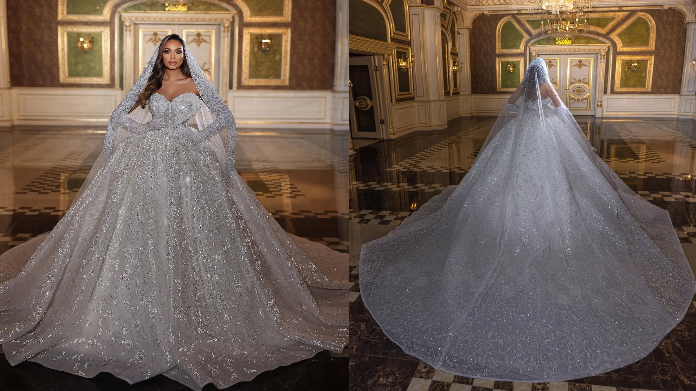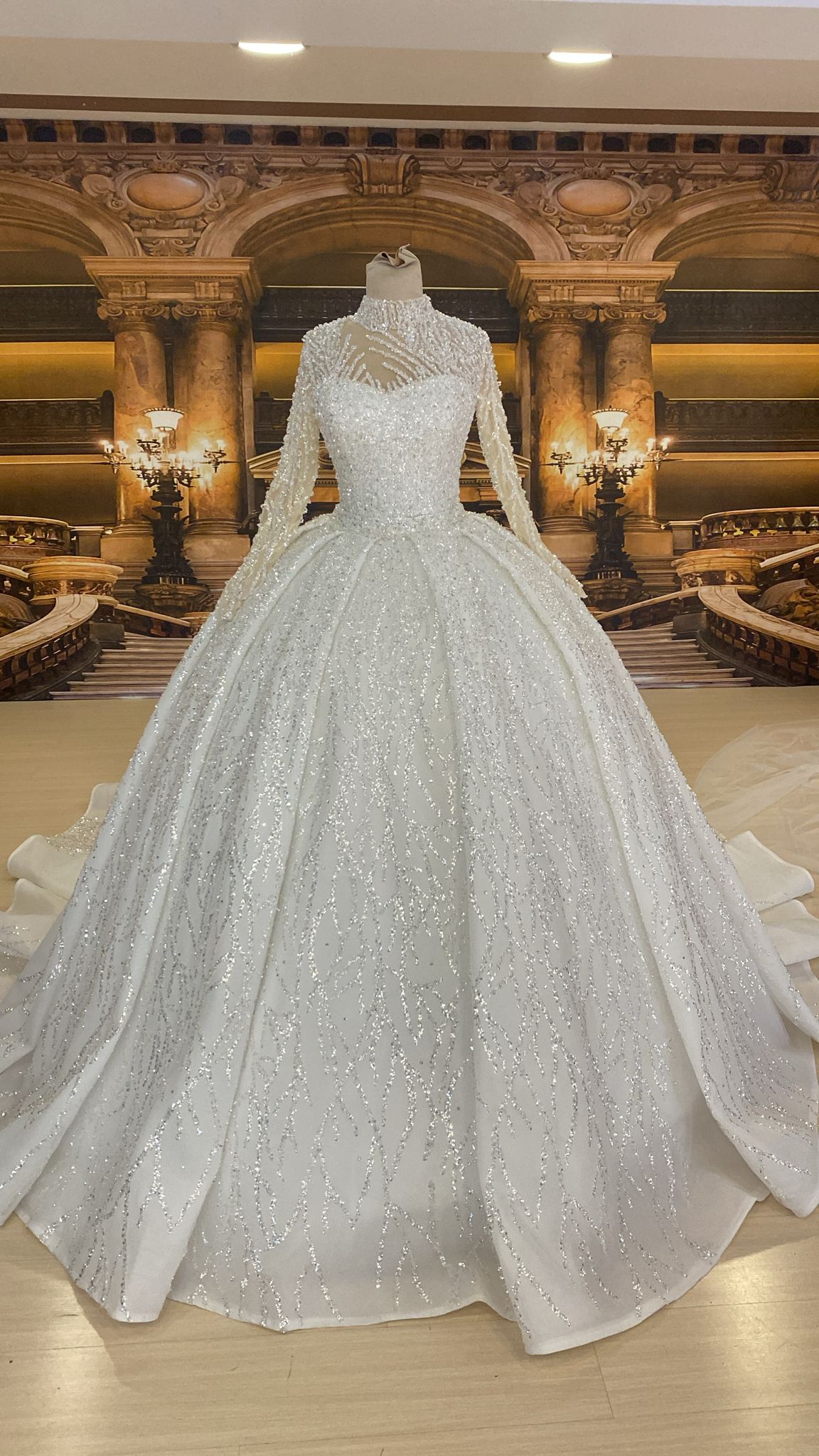 Hosai Embellished Dramatic Long Sleeve Modest Evening Dress