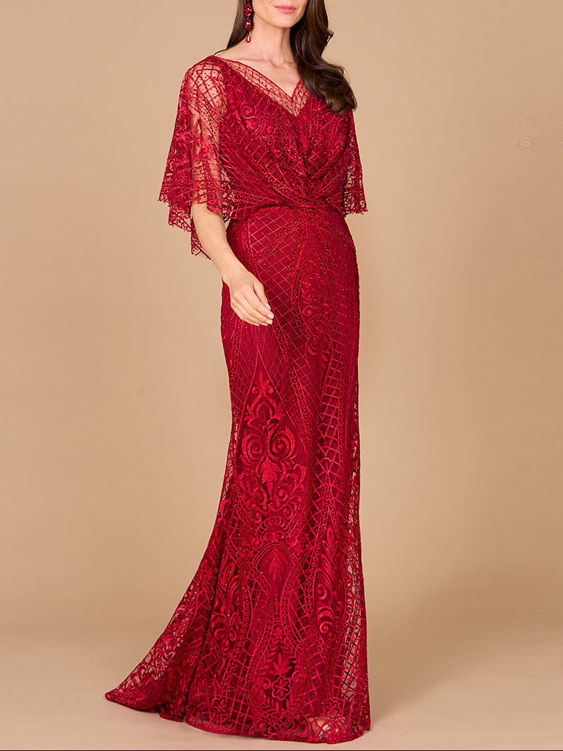 Lara 29673 - Cape Sleeve Mermaid Gown